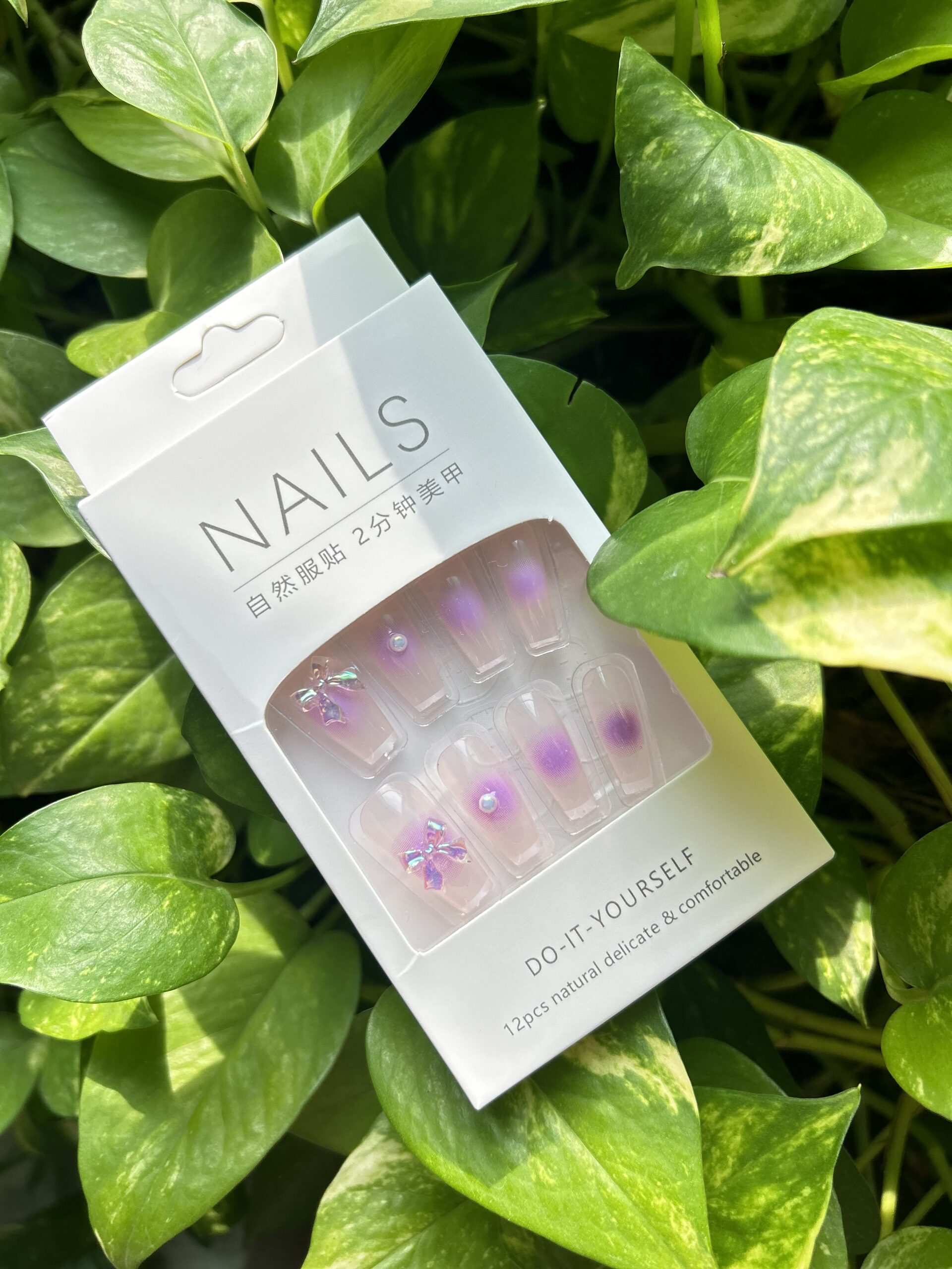 Embrace a serene and luxurious look with the Amethyst Dream collection. These long, coffin-shaped press-ons feature a captivating gradient of lavender to soft pink, reminiscent of a beautiful sunset. The design is finished with elegant rhinestone accents and a charming silver bow detail, making a statement of subtle luxury and style. Get a stunning, intricate manicure at home with this beautiful and easy-to-apply set.