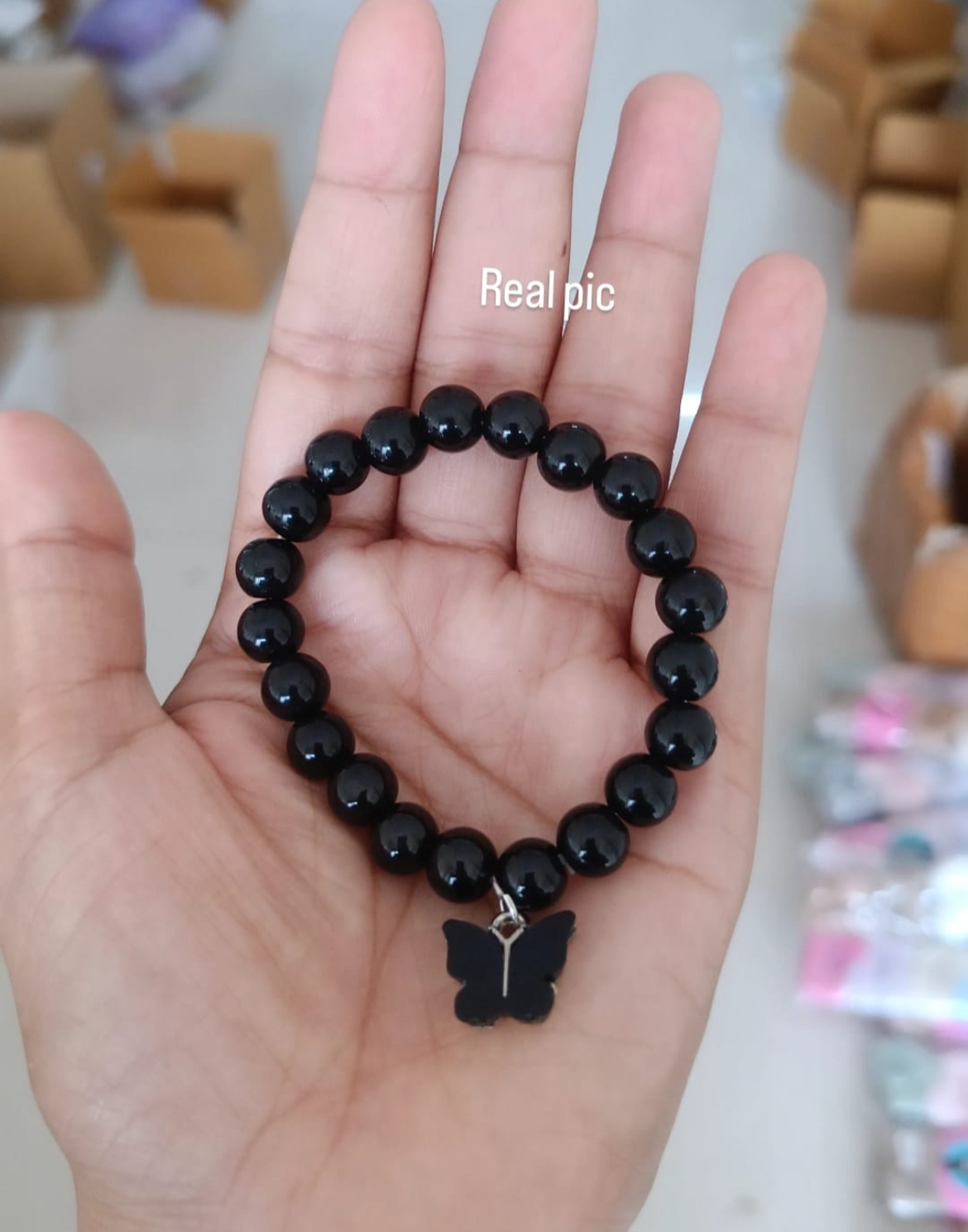 Crafted with smooth black beads and finished with a delicate butterfly charm, this bracelet symbolises transformation, strength, and quiet elegance. Minimal yet striking, it’s perfect for everyday wear—whether styled solo or layered for a bold statement. A timeless piece designed to add meaning and style to your look.