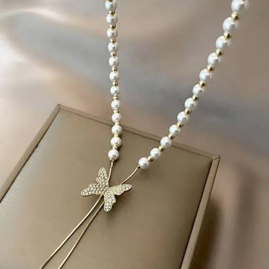 Delicate, dreamy, and timeless — the Butterfly Faux Pearl Necklace from Aura Jewels is a symbol of elegance with a touch of whimsy. Featuring a strand of lustrous pearls that lead to a dazzling butterfly pendant, this necklace captures the magic of transformation and beauty. The butterfly sparkles with tiny crystals, while the pearl chain adds a sophisticated charm, making it the perfect fusion of classic and modern.