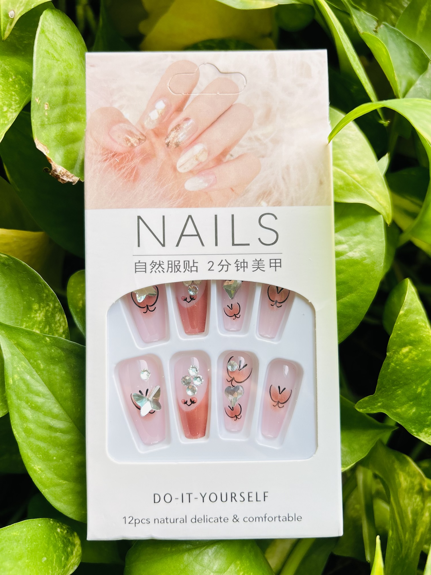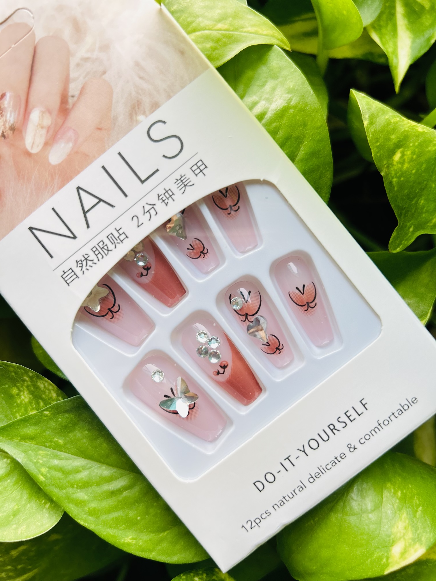 A magical take on the classic ombre, this set transitions from a sheer nude to a warm, peachy tone. It’s dusted with a scattering of tiny, silver-toned glitter and delicate charms, giving your fingertips a whimsical, fairy-like glow.