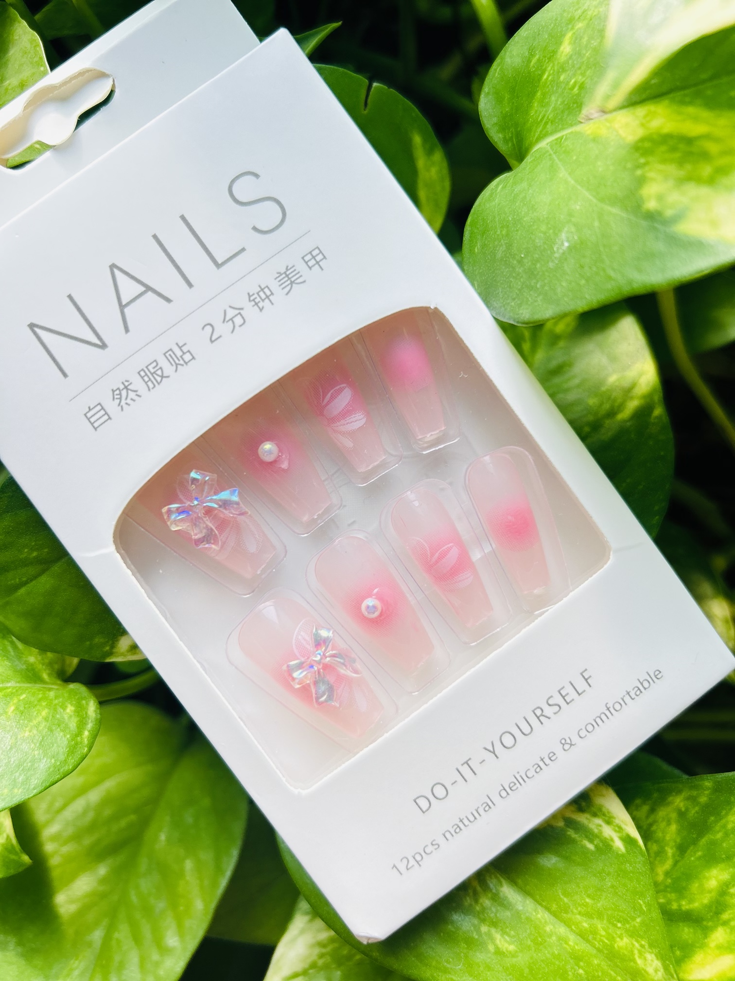 Step into a whimsical garden with these enchanting press-on nails. The “Floral Fantasy” set features a delicate pink ombre base that fades to a clean, translucent tip. Each nail is a canvas of charm, adorned with a mix of sweet hearts, subtle flowers, and dazzling iridescent bows. The design is finished with sparkling rhinestones and a single pearl, creating a look that is both romantic and magical.