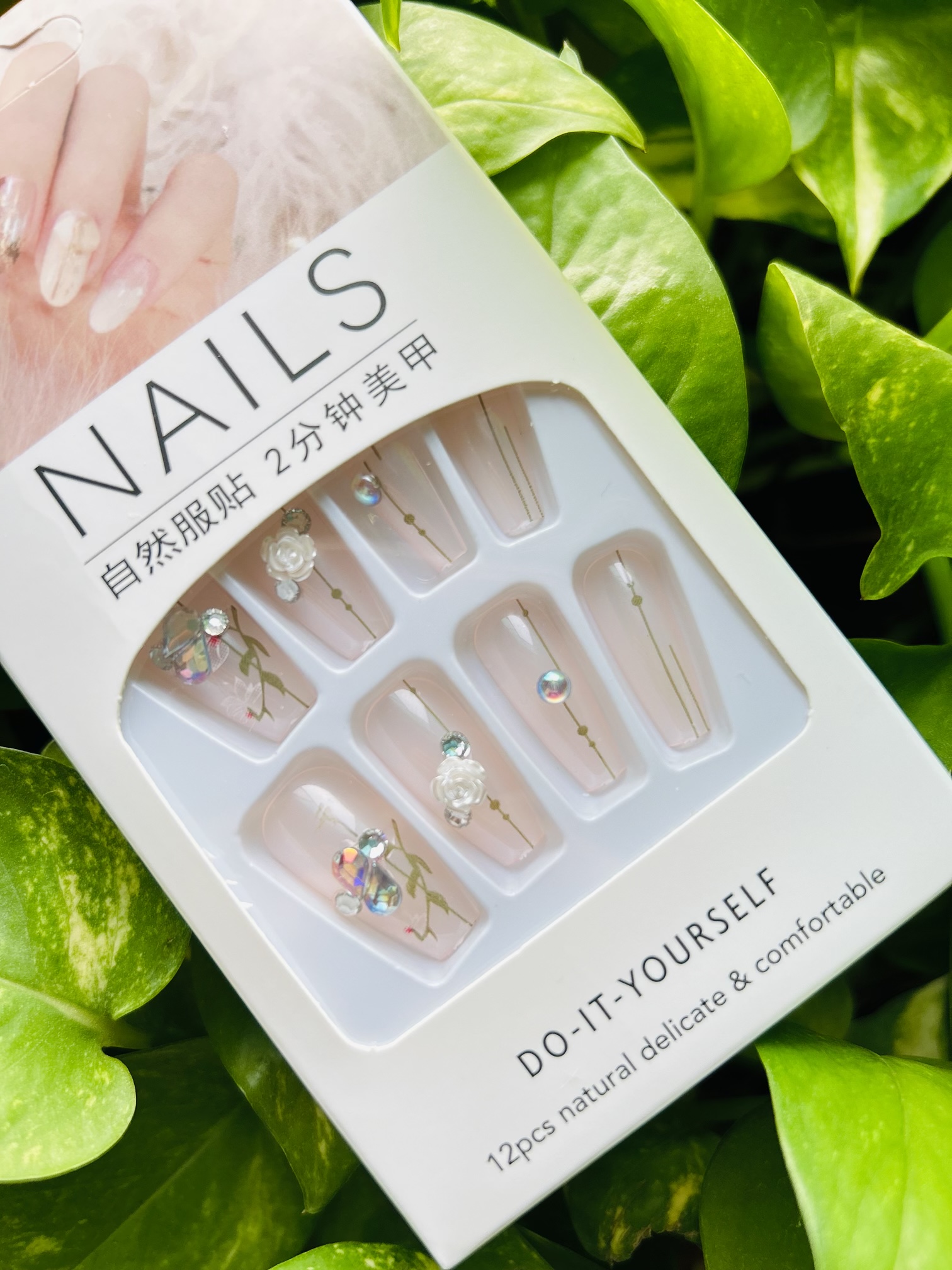Step into a world of delicate beauty with our ‘Garden Gem‘ press-on nails. This ethereal set features a soft, milky pink base, adorned with intricate floral and vine designs. Delicate pearl accents and sparkling rhinestones add a touch of subtle glamour, while a magnificent, iridescent crystal bow on the accent nail serves as a breathtaking centerpiece. A perfect blend of nature-inspired art and jewel-toned elegance.