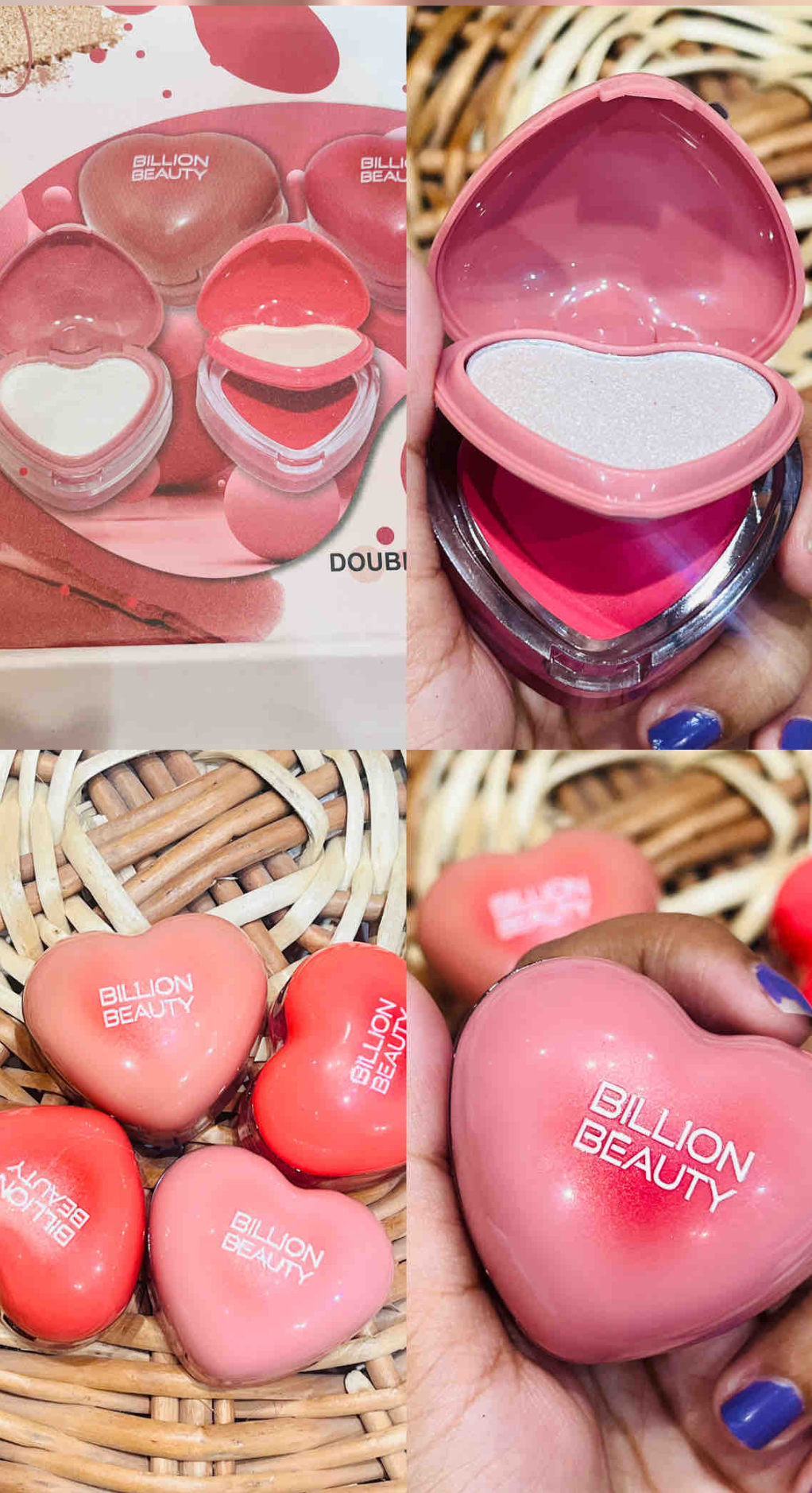 On the top layer, discover a silky-smooth blush that adds a natural flush of color to your cheeks. Choose from a range of flattering shades to create a healthy and vibrant look. Beneath, the second layer unveils a stunning highlighter with a delicate shimmer that catches the light, perfect for accentuating your cheekbones, brow bones, and Cupid’s bow.