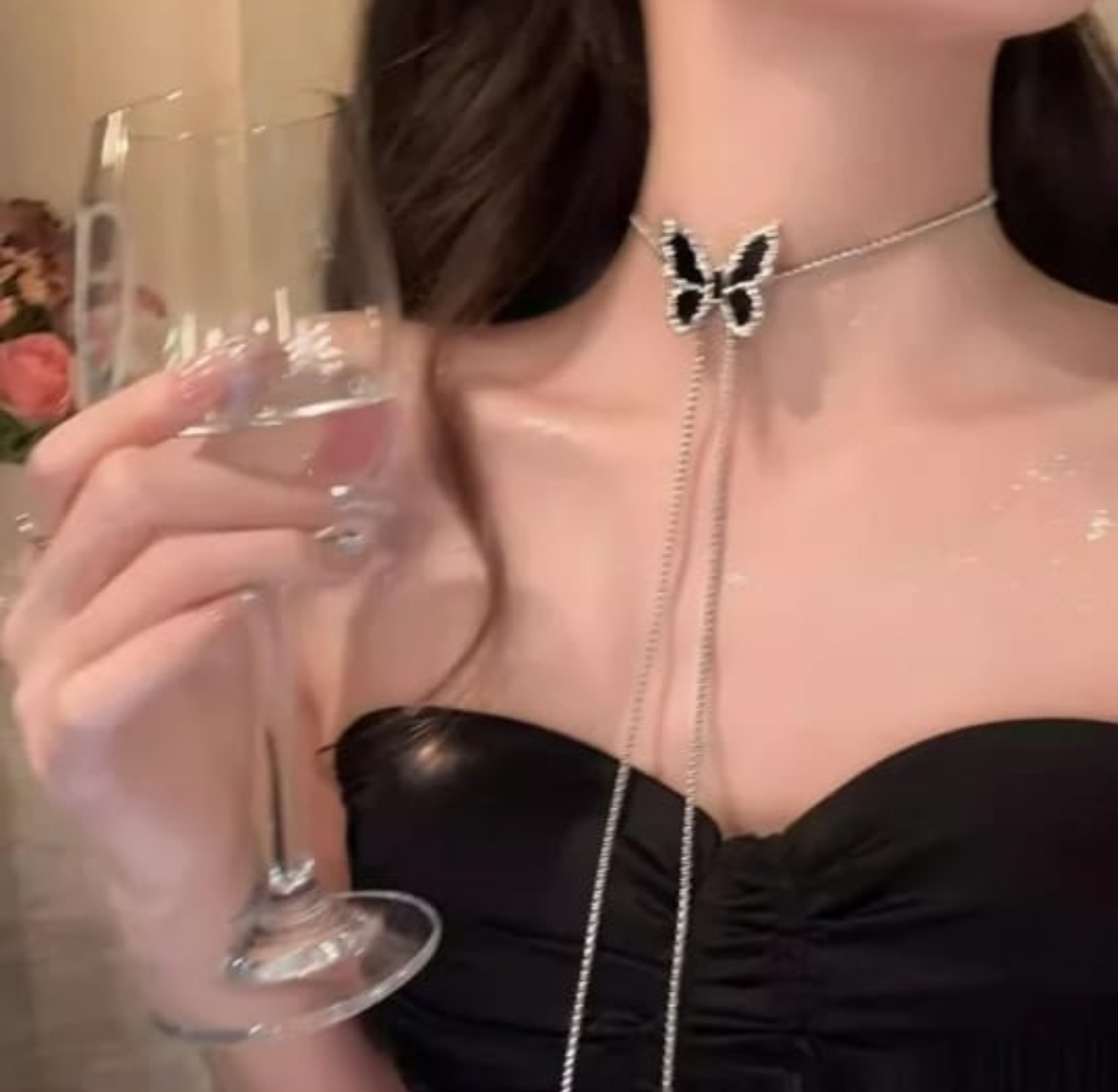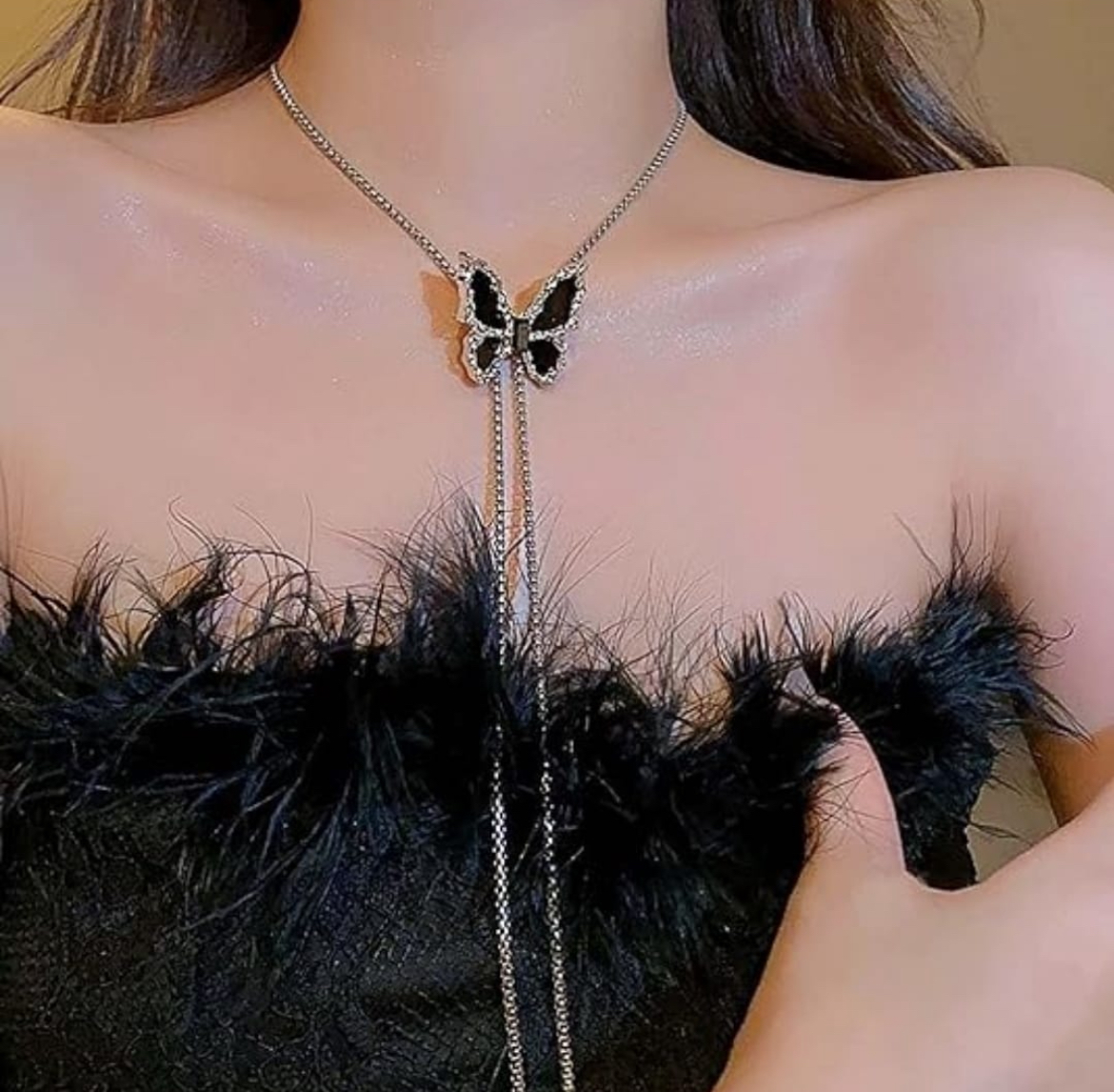 • Intricate Design: Features a beautiful obsidian butterfly pendant adorned with sparkling details, suspended from a delicate chain.