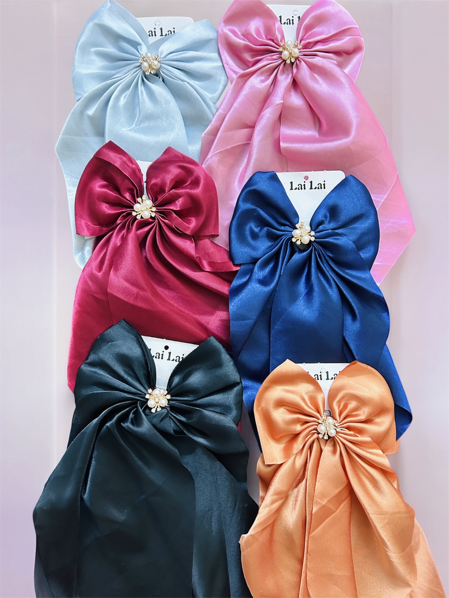 Delicate satin bows finished with a pearl-flower centre, designed to add a graceful, feminine touch to any hairstyle. Crafted in smooth, glossy satin, these bows are lightweight, elegant, and perfect for soft updos, ponytails, half-ties, or special occasions. A timeless accessory for romantic, princess-inspired looks.